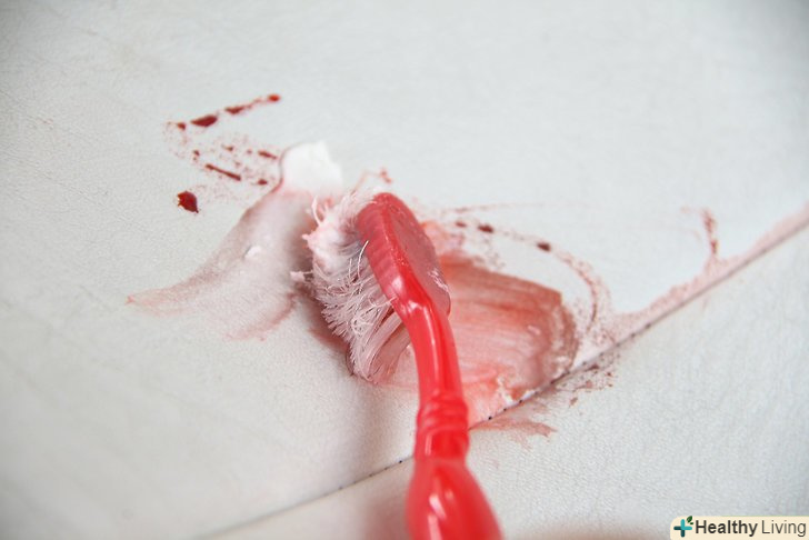 Нанесіть пасту на пляму. Пасту слід нанести на пляму крові зубною щіткою, а потім обережно потерти нею ж. Перш ніж прати пасту, залиште її для кращого впливу на 10 хвилин. [14]