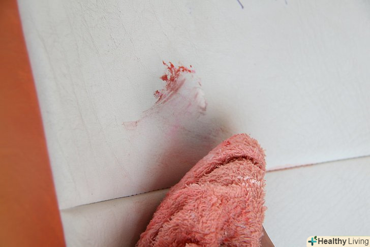 Зітріть пасту і при необхідності нанесіть її ще раз. щоб стерти пасту, можна використовувати вологу ганчірочку. Якщо після видалення пасти пляма все ще залишається, спробуйте наносити її повторно і прати до тих пір, поки пляма повністю не зникне або вже буде нічого видаляти з поміняла колір оббивки.