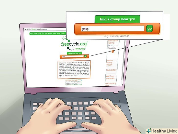 Знайдіть сайт або групу в соціальних мережах, де люди віддають речі даром. для цього введіть в пошуковику назву свого міста і що-небудь на кшталт «Віддам даром», «Віддам Безкоштовно» або «прийму в дар».