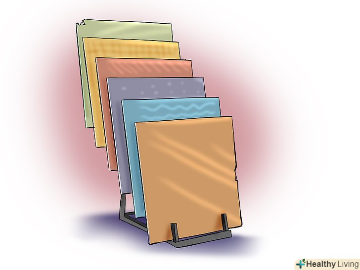 Поцікавтеся безкоштовними зразками в магазинах підлогових матеріалів. у них часто безоплатно віддають невеликі шматки килимових покриттів з плямами, обрізки, неповні упаковки кахлю або залишки вінілових матеріалів. Їх може бути недостатньо площі для всієї площі підлоги, але їх можна поєднувати і комбінувати.