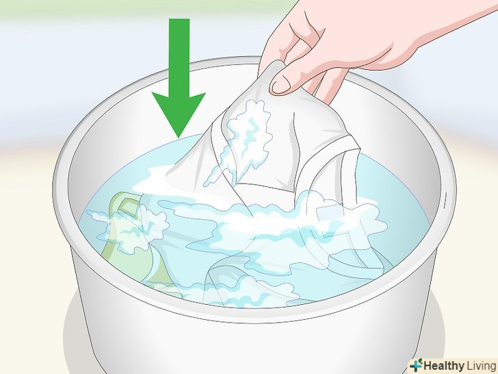 Замочіть речі у воді. Поговоріть білизна у воді, щоб воно повністю намокло. Можете ненадовго залишити білизну в тазику, щоб воно ввібрало миючий засіб.