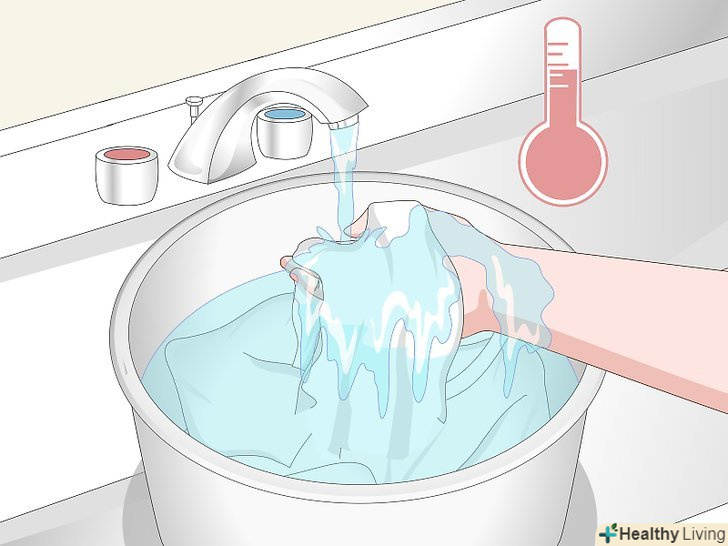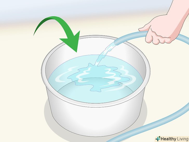 Заповніть таз водою. рекомендується таз (або відро) об'ємом близько 20 літрів, в яке слід набрати близько 10 літрів води. [4]- Якщо тазика у вас немає — скористайтеся раковиною з закритим стоком. Переконайтеся, що стік надійно закритий пробкою і налийте в раковину теплої води.