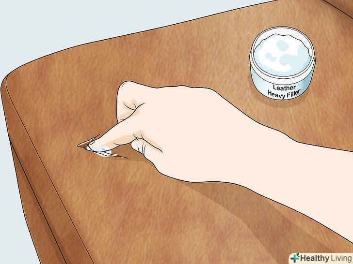 Обробіть подряпину заповнювачем тріщин для шкіряних виробів. називається заповнювачем речовина має консистенцію шпаклівки, і їм заповнюють тріщини і порізи на шкіряних меблів. За допомогою пальця або невеликої лопатки замажте глибоку подряпину заповнювачем тріщин таким чином, щоб зрівняти пошкоджене місце з поверхнею решти шкіри. [13] потім необхідно почекати близько 30 хвилин, щоб заповнювач тріщин застиг.- Після застосування заповнювача тріщин візьміть ще один шматочок дрібнозернистого наждачного паперу з зерном 1200 і затріть поверхневий шар підсохлого заповнювача.