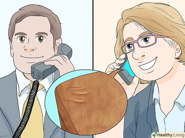 Якщо ви помітили на своїх меблях подряпину, зателефонуйте її виробнику. у багатьох виробників є свої власні рекомендації по ремонту їх шкіряної продукції. Часом вам навіть можуть безкоштовно або зі знижкою вислати спеціальний набір для ремонту. Якщо ж вам не вдасться зв'язатися з виробником, переходите до наступного кроку.- Рекомендована виробником процедура ремонту може бути спеціально призначена для конкретного виду шкіри, з якого зроблені меблі.
