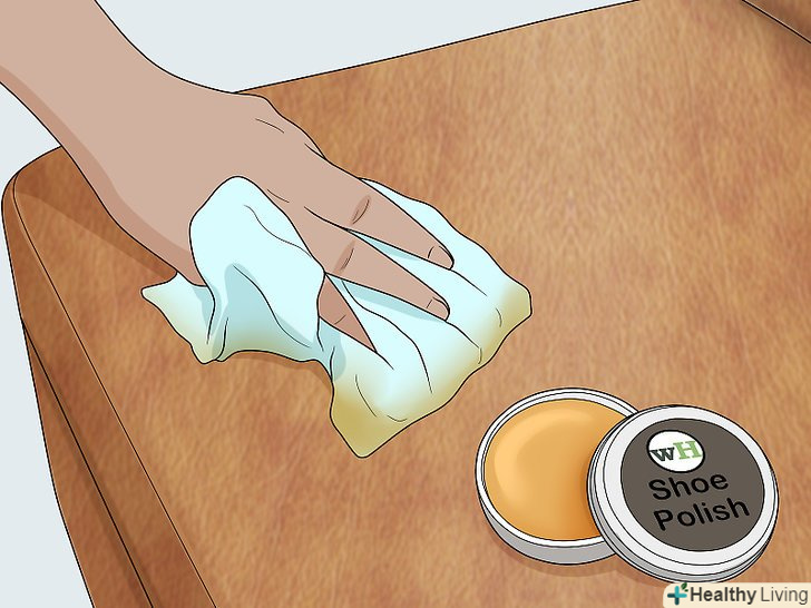 Обробіть подряпину кремом для взуття. знайдіть крем для взуття в тон ваших меблів. [9] спочатку просто нанесіть крем на подряпину чистою серветкою або ватною паличкою. Потім втирайте крем в шкіру, а потім за допомогою чистої серветки швидкими рухами відполіруйте пошкоджене місце.- Даний крок не прибере подряпини повністю, але допоможе замаскувати їх.