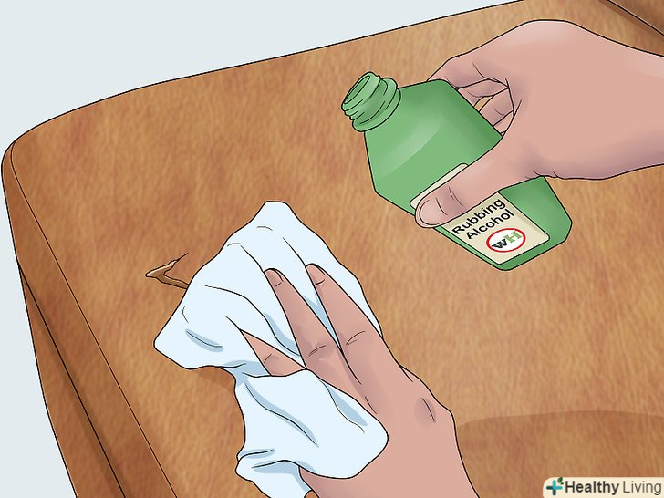Очистіть пошкоджене місце медичним спиртом. глибокі подряпини на шкіряних меблів можуть бути затертими і брудними, тому перед ремонтом їх в першу чергу необхідно очистити. Візьміть чисту серветку і змочіть її медичним спиртом, а потім легенько потріть подряпане місце. [10]- Медичний спирт досить швидко сохне. Залиште меблі в спокої на 10 хвилин, і вона повинна висохнути.