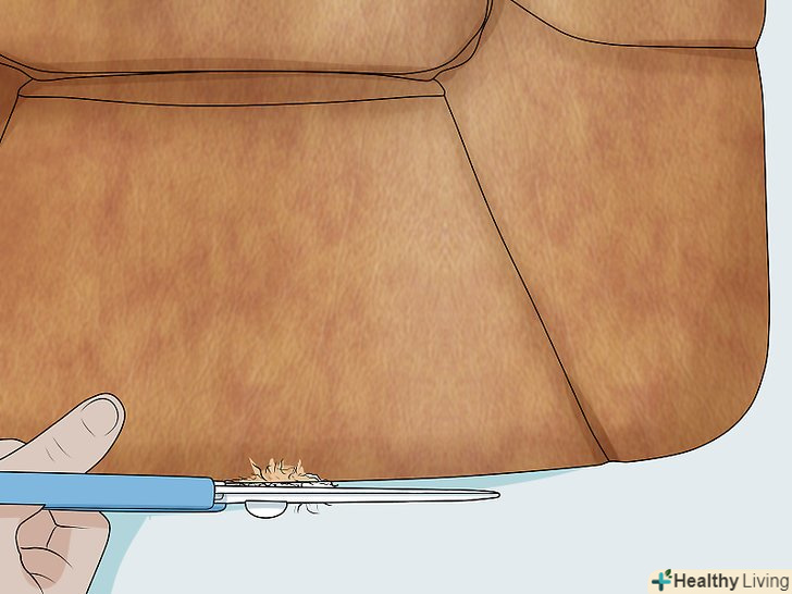 Затріть наждачним папером або обріжте вільні волокна, що стирчать навколо країв подряпини. на відміну від дрібних подряпин, глибокі подряпини можуть робити поверхню шкіри нерівною, потертою або пошарпаною по краях пошкодження. Тому необхідно взяти ножиці і зрізати будь-які вільно стирчать волокна шкіри, щоб область навколо подряпини стала рівною. [11]- В якості альтернативи можна взяти шматочок дрібнозернистого наждачного паперу (з зерном близько 1200) і затерти місце навколо подряпини, щоб зробити його гладким. [12]