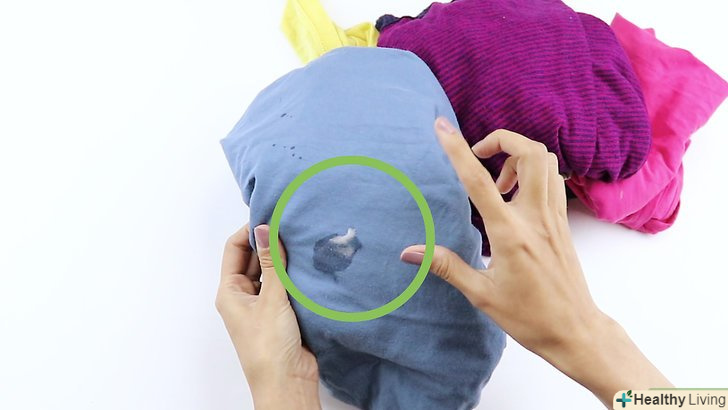 Відокремте забруднений одяг. для виведення плям на одязі іноді потрібна спеціальна обробка перед пранням з іншими речами. Як правило, жирні і масляні плями виводяться засобом для виведення плям.- Намагайтеся не прати і не сушити сильно забруднений одяг в машинці. Деякі види плям складно вивести при високій температурі.
