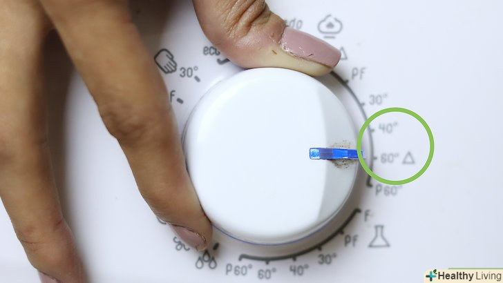 Виберіть температуру води. теоретично, чим гаряче вода, тим чистіше будуть речі. Гаряча вода краще дезінфікує і вбиває мікроби, ретельніше розчиняє порошок і видаляє застарілі плями, що робить одяг яскравіше і чистіше. Але в деяких випадках від гарячої води тканину сідає і вицвітає, а плями в'їдаються ще більше, а ще так збільшується витрата електроенергії. [3] тому виберіть енергоємну і найбільш підходящу температуру води для досягнення кращих результатів.- ВикористовуйтеХолодну воду при режимі делікатного прання для делікатних і не дуже брудних речей, а також одягу, швидко втрачає колір.