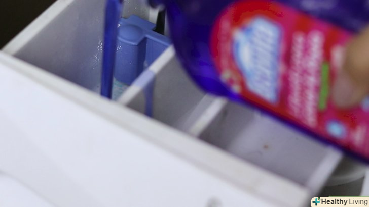 Насипте порошок і налийте пом'якшувач для білизни. дуже важливо попередньо ознайомитися з керівництвом користувача і дізнатися, який порошок найбільше підходить для вашої машинки, і куди його насипати. Здебільшого для сучасних пральних машин використовуються рідкі чистячі засоби і порошки, а також відбілювачі.- Машинки з бічним завантаженням зазвичай оснащені висувною коробкою для порошку і окремими відсіками для пом'якшувача або відбілювача. Така пральна машина сама витрачає чистячі засоби в міру необхідності.