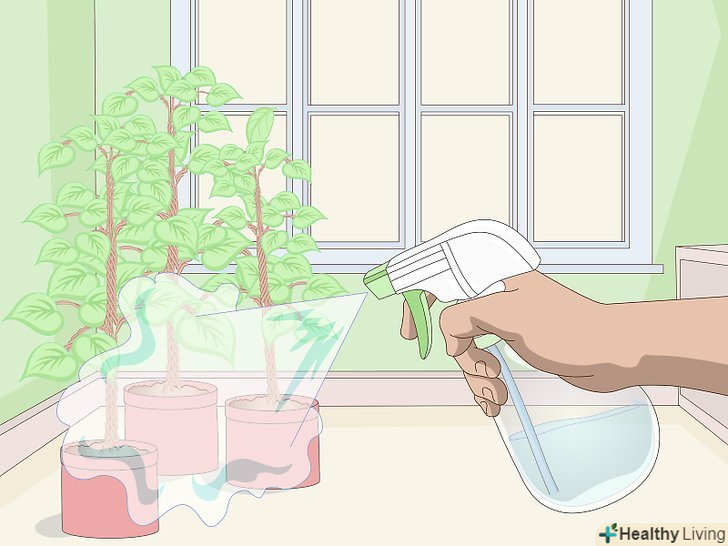 Розпиліть склад в необхідних місцях. перемішавши воду з ефірними маслами, розпорошите репелент в тих місцях, в яких не повинна з'являтися кішка. Зокрема, репелент добре захистить ваші кімнатні рослини, до яких ви не хочете підпускати кішку. [3]- Дотримуйтесь обережності при обробці репелентом килимів, штор та інших текстильних предметів, так як ефірні масла можуть залишити на них плями. Проведіть попередній тест на непомітній ділянці тканини, щоб переконатися в тому, що приготований спрей не завдасть ніякої шкоди.