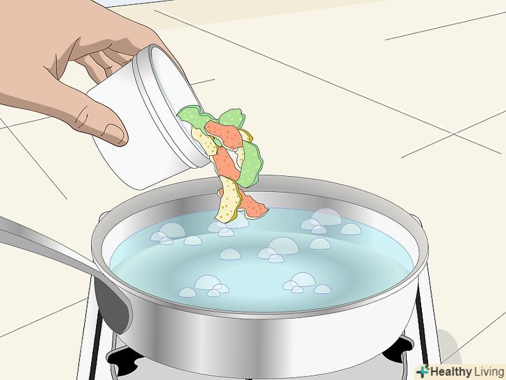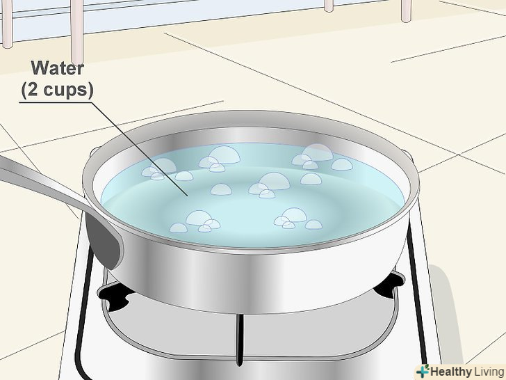 Закип'ятіть воду. Налийте 475 мл води в каструлю середнього розміру. Нагрійте воду до кипіння на середньому або сильному вогні (це повинно зайняти 5-7 хвилин). [7]- Так як ви будете кип'ятити воду, для приготування репеленту її можна взяти з-під крана.