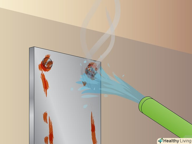 Негайно охолодіть гвинт холодною водою. якщо у вас є під рукою поливальний шланг, полийте гвинт водою, щоб він знову став холодним. Якщо такого немає, облийте гвинт водою з відра або змочіть його мокрою ганчіркою. Дочекайтеся, поки він перестане випромінювати тепло. [10]- В результаті нагрівання гвинт збільшується в розмірі, а в результаті охолодження, навпаки, зменшується. Це повинно зруйнувати іржу.
