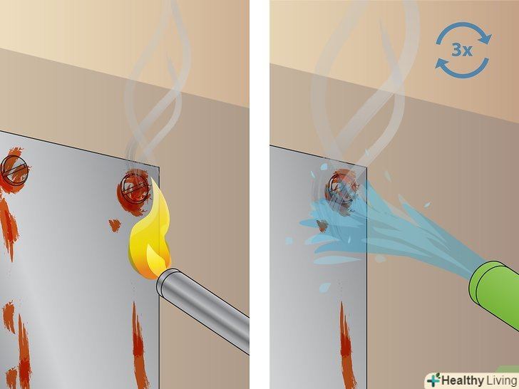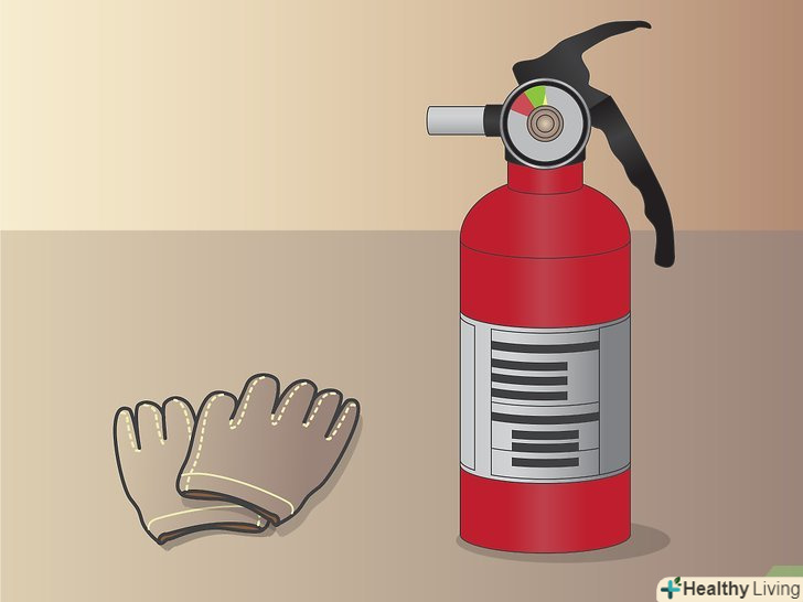 Одягніть шкіряні рукавички і тримайте під рукою вогнегасник. прийміть всі необхідні запобіжні заходи, щоб знизити ризик нещасного випадку під час нагрівання. Пара товстих рукавичок захистять руки від опіків, а вогнегасник допоможе не допустити поширення полум'я в разі загоряння.- Одягніть рукавички тільки після того, як ви закінчите знежирювати поверхню, щоб не допустити потрапляння потенційно небезпечного знежирювача на рукавички.