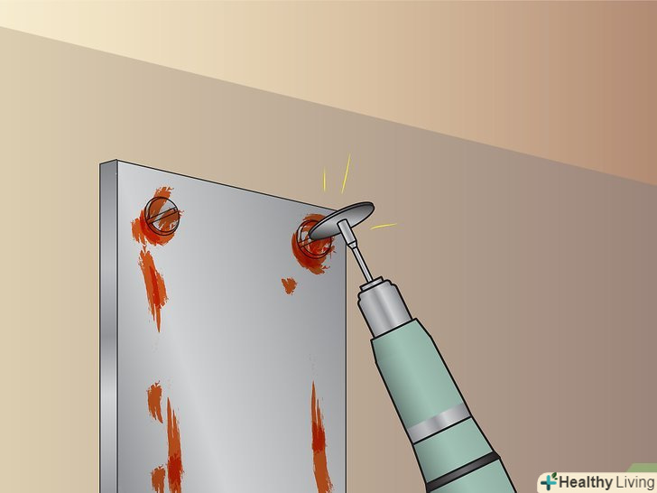 Нанесіть розчинник іржі на капелюшок гвинта і залиште на 15 хвилин. розчинник зазвичай продається у вигляді аерозольного балона. Направте його на гвинт і натисніть на клапан. Рясно розпорошите розчинник навколо капелюшки гвинта, щоб він не тільки змочив саму капелюшок, але і проник до стрижня. [3]- Розчинник іржі продається в більшості будівельних і господарських магазинів.