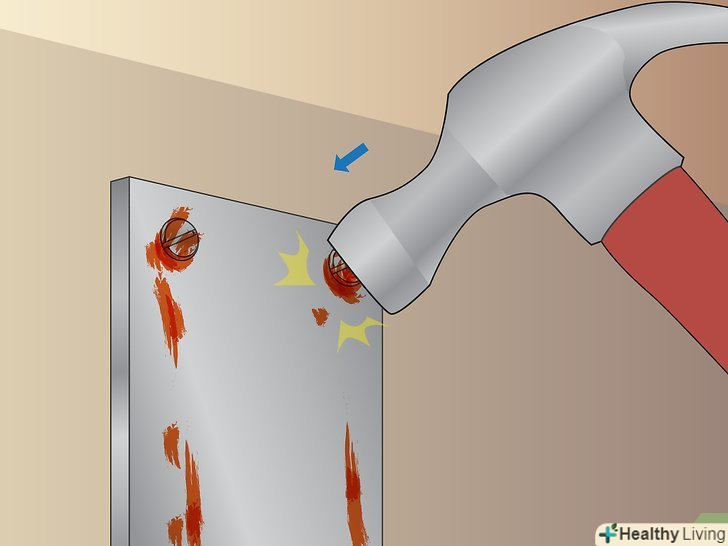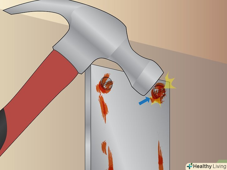 Ударте по гвинту металевим молотком кілька разів. приставте молоток до капелюшку гвинта. Різко вдарте по ній кілька разів, щоб зруйнувати іржу. Постарайтеся розхитати гвинт. Для цього бийте сильно і точно по капелюшку. [2]- Не підставляйте другу руку близько до гвинта, щоб ненароком не потрапити по ній молотком.