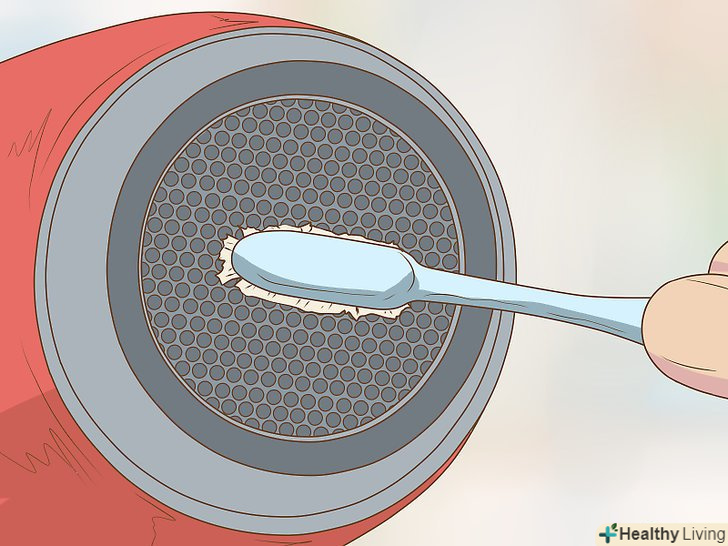 Поліруйте металеві поверхні. на металевих предметах накопичується чимало бруду і пилу, особливо на поверхнях з вузькими прорізами і заглибленнями. Зубна щітка дозволяє відполірувати такі предмети і надати їм сяючий блиск. [10]- Стару бруд і жирні плями можна видалити за допомогою харчової соди, води і зубної щітки.