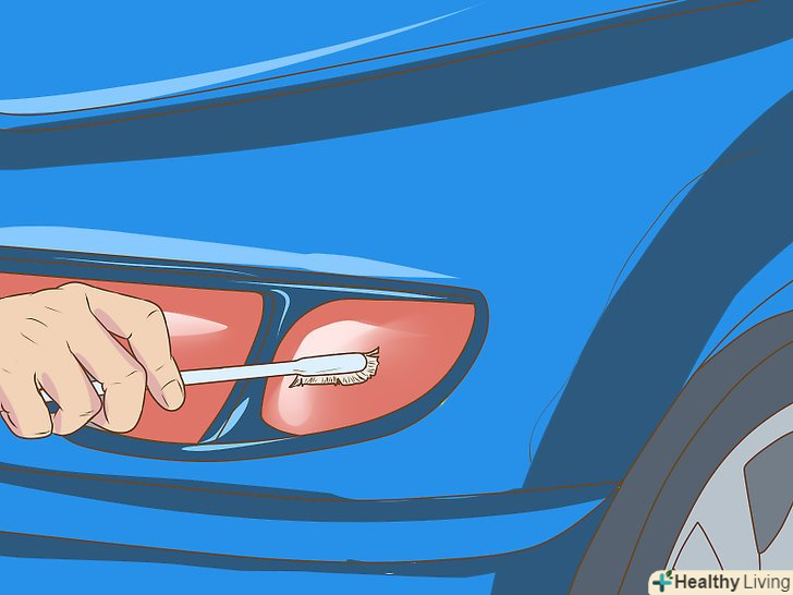Чистіть дрібні елементи автомобіля. в автомобілі безліч невеликих щілин і отворів, в яких накопичується бруд. Очистіть передні і задні фари до блиску за допомогою зубної щітки і мильної води або видаліть все сміття і пил з приладової панелі, магнітоли і навколо спідометра. [9]- Використовуйте щітку та невелику кількість зубної пасти, щоб очистити особливо брудні передні фари.