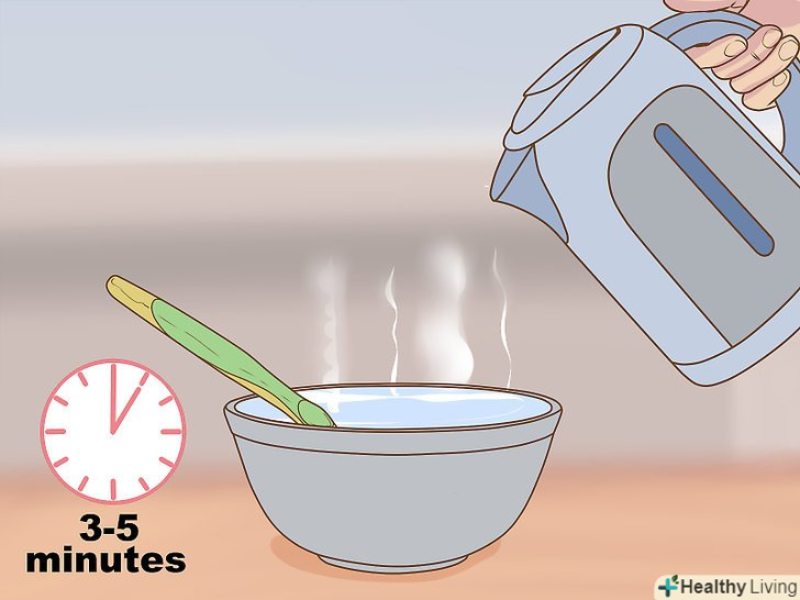 Продезінфікуйте зубну щітку. Наш рот — притулок для різних бактерій, тому стару щітку потрібно попередньо обробити. Перед Новим використанням стару зубну щітку слід занурити в киплячу воду на 3-5 хвилин для дезінфекції. [2]- Не залишайте щітку в окропі без нагляду. Пластик швидко руйнується, тому від щітки може залишитися лише шматок розплавленої пластмаси.