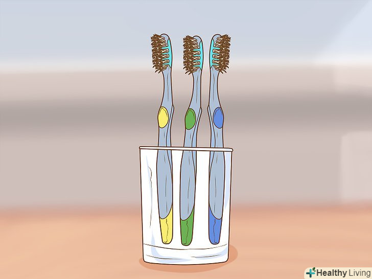 Висушіть щітку. перед Новим використанням слід переконатися, що щітка повністю суха. На вологих щетинках може з'явитися цвіль і бактерії. Висушити щітку досить просто: потрібно лише розташувати її у вертикальному положенні, щоб вода стікала зі щетинок. [3]- Так як Ви вже не будете чистити щіткою зуби, можна прискорити процес і просушити її ганчіркою або рушником.