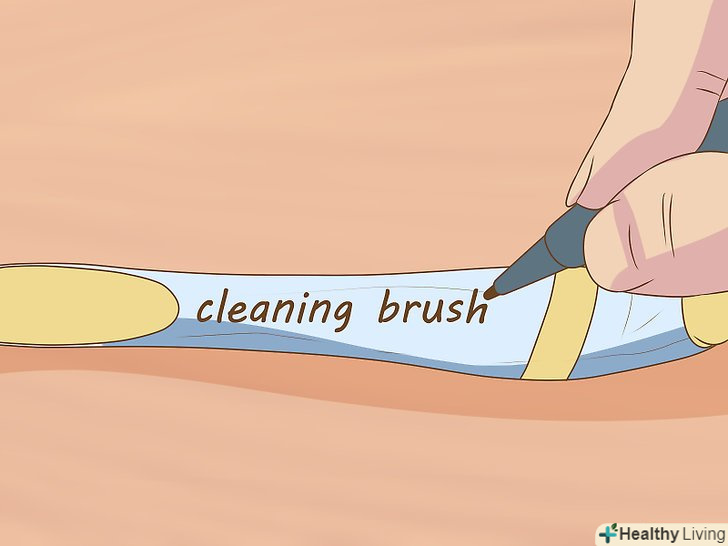 Позначте щітку. нанесіть на щітку напис або розпізнавальний знак, щоб не сплутати її з новими зубними щітками. Зробіть напис маркером на зворотному боці щітки або приберіть її з шафки над умивальником. Переконайтеся, що ви випадково не скористаєтеся такою щіткою для чищення зубів.