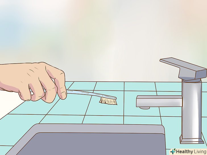 Чистіть брудні раковини. якщо потрібно очистити розчин навколо раковини в кухні або металеву пробку умивальника в ванній кімнаті , то зубна щітка відмінно підійде для очищення невеликих важкодоступних ділянок на зразок швів між кахлем, ущільнень, дрібних щілин в раковинах і змішувачах. [4]- При очищенні швів і ущільнень не тисніть занадто сильно, оскільки щетинки можуть зруйнувати шов або ущільнення. Дійте впевнено, але без надмірних зусиль.
