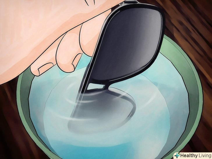 Змийте суміш з лінзи. змийте пасту прохолодною водою. Особливу увагу приділіть щілин на стику лінз і оправи і іншим ділянкам, куди могла просочитися паста.