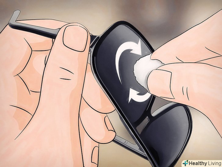Розітріть подряпину воском або полірувальним засобом. круговими рухами втирайте рідину в подряпину м'якою тканиною або ватним кулькою протягом 10 секунд. Лак і віск заповнять собою будь-які наявні подряпини на лінзах.