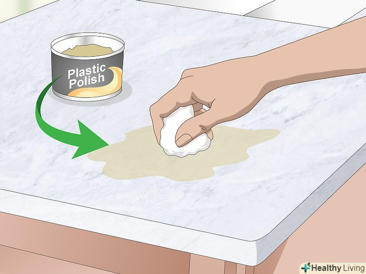 Поліруйте поверхню. Полірування вирівняної поверхні поверне їй колишній блиск. Нанесіть на чисту ганчірку фірмову полірувальну пасту для пластику або акрилу. Відполіруйте всю поверхню пластику, щоб вона стала однорідною. Залишки поліролі витріть іншою чистою ганчіркою. [10]- Полірувальну пасту можна знайти в будь-якому великому супермаркеті, а саме у відділі автомобільних товарів або побутових чистячих засобів.