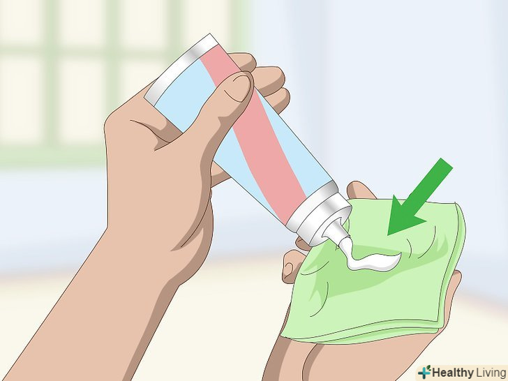 Нанесіть зубну пасту на вологу ганчірку. такий легкий абразивний матеріал, як зубна паста, дозволить видалити подряпину. Використовуйте звичайну пасту, а не гелеву. Не наносите занадто багато пасти, а лише стільки, щоб її можна було розмазати по всій поверхні. Замість зубної пасти можна використовувати: [3]- Меблевий лак;