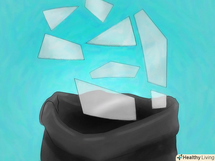 - Якщо скло поміщається у відро для сміття, покладіть в нього скло і розбийте його там.