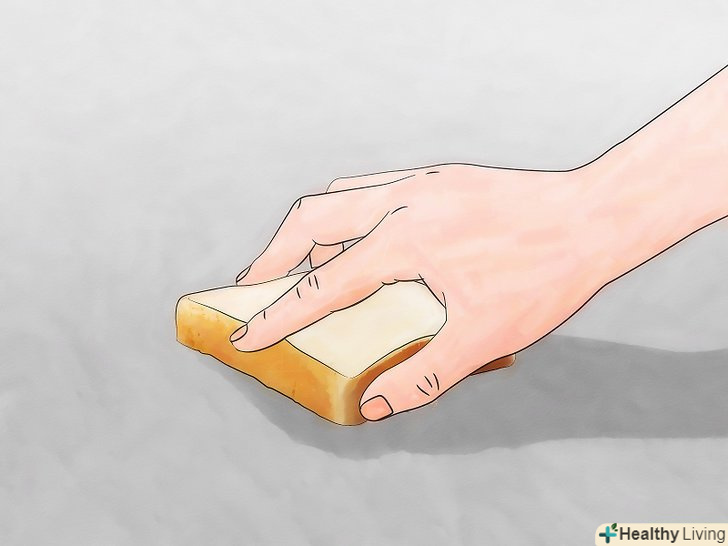Проведіть по ділянці шматком м'якого хліба. навіть пилосос може пропустити кілька крихітних шматочків скла, які, незважаючи на свої малі розміри, все одно можуть порізати або викликати роздратування на шкірі. Шматок хліба є простим і недорогим інструментом для прибирання цих шматочків скляного порошку. Візьміть з кухні шматок м'якого хліба і проведіть їм по підлозі м'якушем вниз, щоб зібрати залишився скло. [11]- Хоча хліб є практично в будь-якому будинку, з цим завданням можуть впоратися і інші предмети побуту. Розрізана картопля, клейка стрічка, скотч або липкий ролик для чищення одягу теж згодяться. [12]