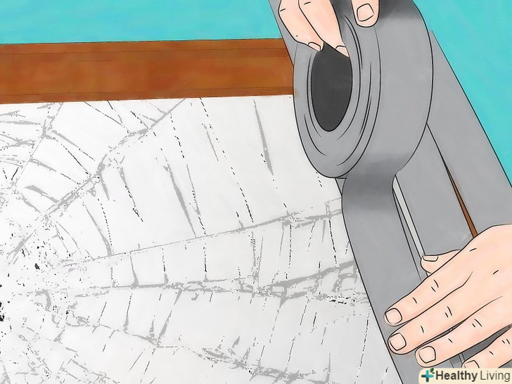- Чим більшу поверхню ви заклеїте, тим краще, але якщо хочете заощадити скотч, обмотайте передню і задню сторони скла хрест-навхрест. [3]
