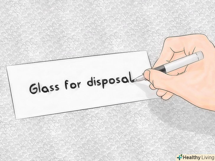 Позначте скло. після того, як ви ретельно обмотаєте скло, зробіть позначку на упаковці, щоб інші люди знали, що з ним слід бути обережним. Досить буде фрази»скло на утилізацію". [5]- Напис повинна бути великою і розбірливою.