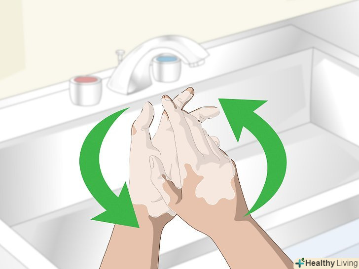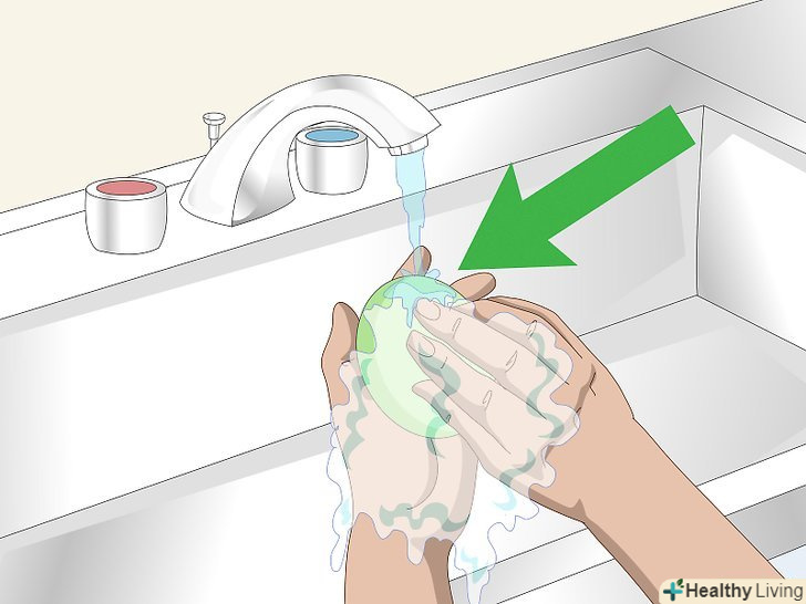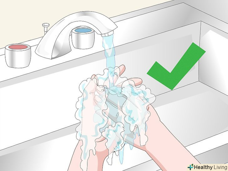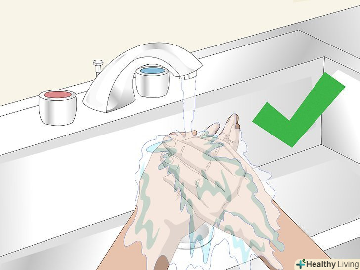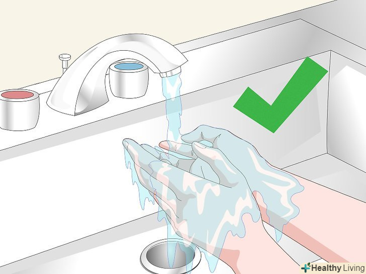 Сполосніть руки під водою. не додавайте більше миючого засобу, коли будете мити руки. Просто підставте руки під проточну воду, щоб змити сіль і миючий засіб. Коли закінчите мити руки, витріть їх рушником. [13]