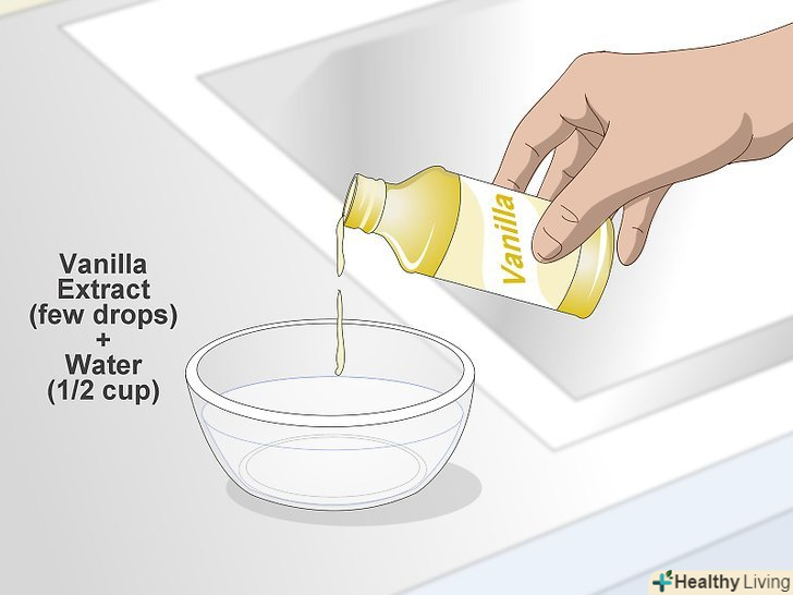Змішайте ванільний екстракт з водою. розведіть кілька крапель ванільного екстракту приблизно в 120 мл води. Якщо від води не буде виходити запах ванілі, додайте ще кілька крапель екстракту. [4]