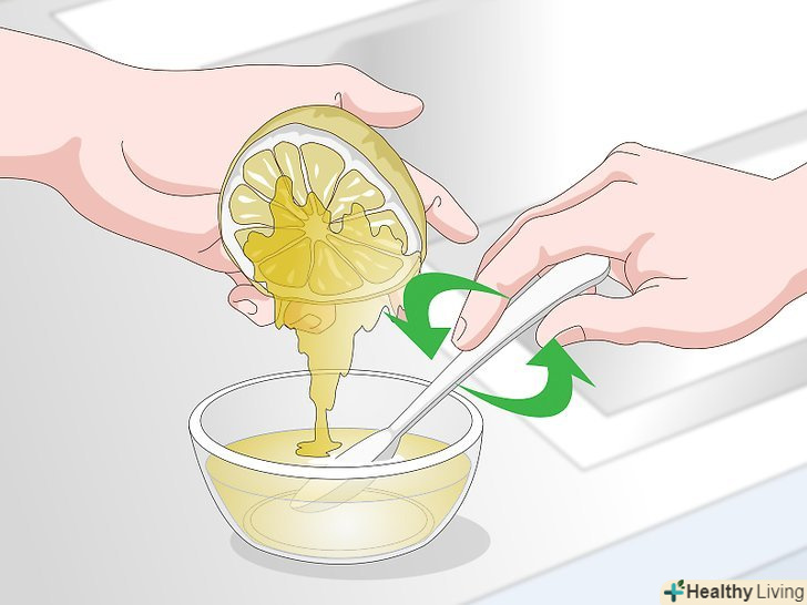 Змішайте лимонний сік і воду. додайте в чашку рівні частини лимонного соку і води. Розмішайте розчин ложкою або іншим столовим приладом. [7]