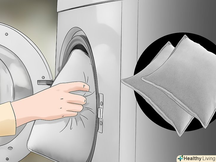 - Більшість подушок з миється тканини можна прати в машині при делікатному режимі і в холодній воді. Якщо на подушці немає бирки, то переконайтеся, що тканину можна прати, і помістіть в пральну машину. [21]