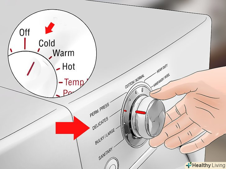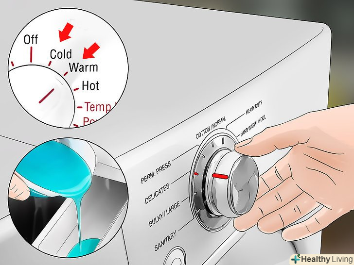 Використовуйте прохолодну або теплу воду, м'який миючий засіб і делікатний режим прання. вибирайте рідкий миючий засіб, який слабо піниться. Пральний порошок буде складно вимити при полосканні.- Якщо на бирці вказані інші вимоги до температури води, миючого засобу і режиму прання, то дотримуйтесь вказівок на бирці. [10]