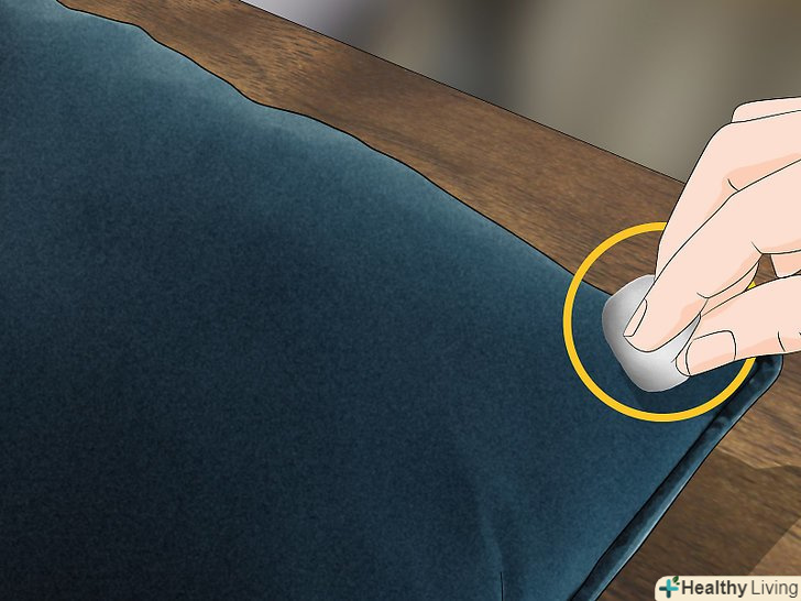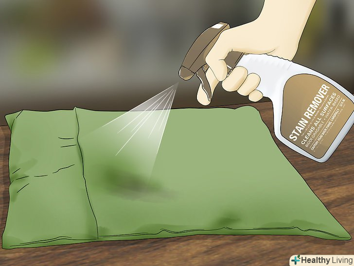 Перевірте стійкість кольору тканини. якщо пляма знаходиться на видимій частині, то спочатку перевірте стійкість кольору на непримітній ділянці чохла. Достатньо лише намочити ватний тампон водою і притиснути його до подушки. Якщо фарба злиняє, то віднесіть подушку в хімчистку. Якщо все в порядку, то переходите до очищення. [4]