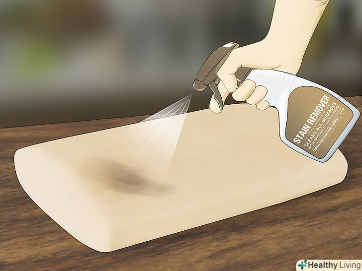 Обробіть особливо брудні ділянки аерозольним засобом для виведення плям. якщо немає такого засобу, то його легко приготувати. Виберіть один з наступних варіантів, додайте всі інгредієнти в пластмасовий аерозольний флакон і струсіть. Потім нанесіть суміш на сильно заплямований ділянку.- Дві частини 3% перекису водню і одна частина рідини для миття посуду. [15]