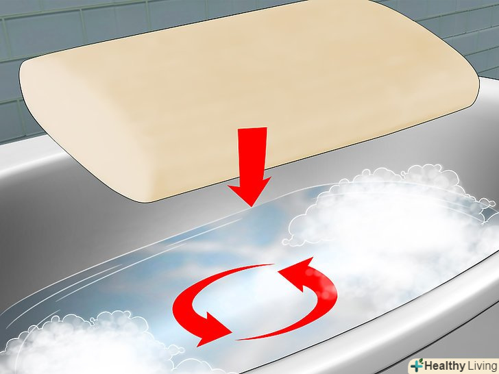Знову Заповніть ванну чистою водою і залиште в ній подушку на 10 хвилин. при необхідності притисніть подушку, щоб вона занурилася під воду і просочилася водою. Подушка повинна піти під воду повністю і залишатися під водою. Якщо подушка піднімається, притисніть її важким предметом.