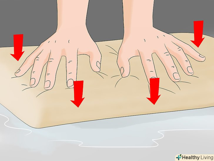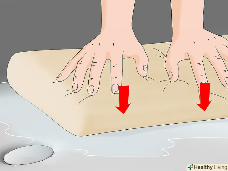 Притисніть подушку, щоб видавити зайву воду. якщо з подушки почне виходити прозора чиста вода, переходите до сушіння. Притискайте подушку в різних точках, щоб видалити зайву воду. Повторюйте до тих пір, поки вода перестане виходити.