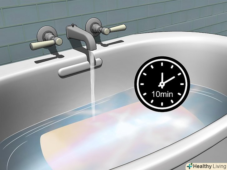 Наберіть у ванну теплу воду і додайте м'який миючий засіб. води у ванні повинно бути достатньо, щоб повністю покрити подушку. Також краще використовувати миючий засіб для ручного прання (вони мають більш м'яким дією). Визначте необхідну кількість засобу відповідно до рекомендацій на упаковці. [18]- Якщо у вас немає м'якого миючого засобу для «ручного прання», використовуйте звичайний засіб для автоматичного прання. Скоротіть кількість миючого засобу і працюйте в гумових рукавичках. Також можна використовувати рідину для миття посуду або дитячий шампунь.