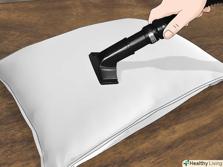 Очистіть пилові подушки пилососом. якщо подушка просто покрита пилом і на ній немає плям, то просто очистіть поверхню пилососом з насадкою для тканини. Встановіть слабку потужність, щоб не пошкодити піну. [20]