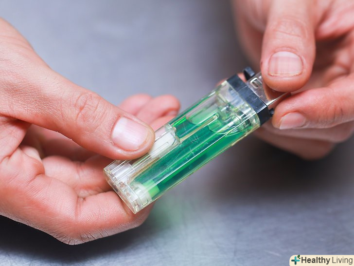 Заправте запальничку. для заправки більшості запальничок вам знадобиться газовий балончик зі зрідженим бутаном, який можна придбати в найближчому магазині господарських товарів. Перед заправкою необхідно випустити з запальнички весь газ, що залишився. Для цього переверніть запальничку догори дном, в якому розташований заправний клапан. Натисніть на цей клапан, тримаючи запальничку в стороні від свого обличчя, а також від джерел відкритого вогню і легкозаймистих предметів. [3]- Переконайтеся, що сопло газового балончика підходить до заправного клапана запальнички. Вони повинні стикуватися у вертикальному положенні, з запальничкою, що стоїть на балончику. Вставте сопло в заправний клапан і швидко переверніть всю конструкцію так, щоб запальничка опинилася під балончиком. Після цього притисніть запальничку до сопла газового балончика, поки не відчуєте, що корпус запальнички став холодним − це ознака того, що ви успішно напустили газ в резервуар запальнички.