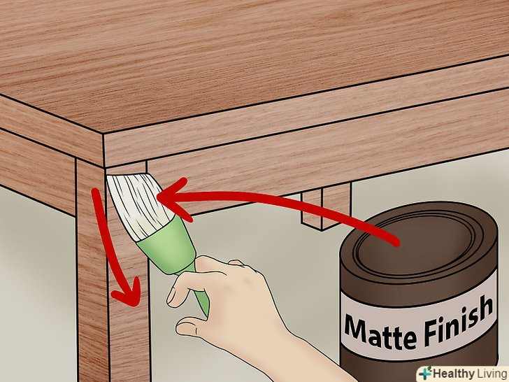 Фінішна обробка. коли фарба висохне, можете нанести на меблі поліуретан на водній основі. Він послужить в якості герметика і фінішної обробки. Робити це не обов'язково, але з ним побілка проіснує набагато довше.- Віддайте перевагу матовою або сатиновою фінішній обробці.