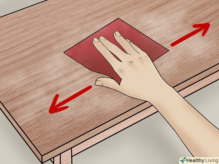 Відшліфуйте поверхню меблів. побілка найкраще виглядає на необробленої деревині, так що вам знадобиться наждачний папір, шліфувальна колодка або орбітальна Ручна шліфувальна машина, щоб відшліфувати поверхню меблів. Таким чином, ви зніміть обробку, яка вже була на меблях і підготуєте її до побілки. [4]