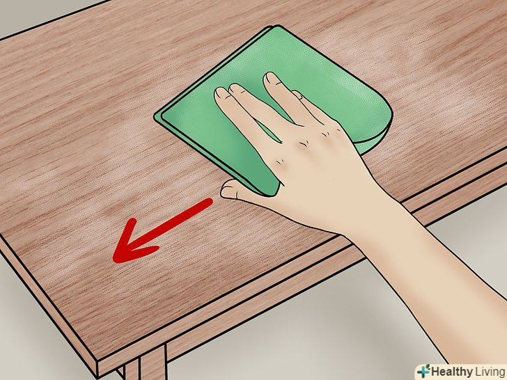 Протріть меблі сухою ганчіркою. перш ніж нанести побілку, ви повинні прибрати всю деревну муку, яка залишилася після шліфування. Це також дозволить зробити остаточну обробку більш гладкою. Візьміть суху ганчірку і протріть меблі, щоб прибрати з неї весь пил.