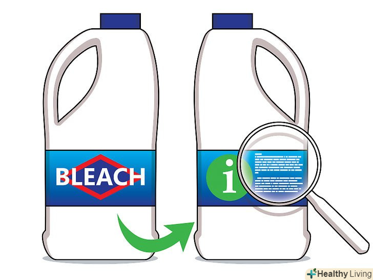 Прочитайте етикетку на відбілювачі, перш ніж приступити до очищення плями. рідина для миття посуду і оцет можна безпечно використовувати на плямі, залишеному відбілювачем, але вам все одно варто уважно читати інструкції та попередження на пляшці з-під відбілювача перед тим, як нанести на пляму якийсь засіб. [8]- На багатьох етикетках вказані хімічні речовини, які ні в якому разі не можна змішувати з відбілювачем (на зразок аміаку), через якого можуть виникнути токсичні пари. Перевірте склад миючого засобу або барвника, яким ви хочете скористатися, і переконайтеся, що в ньому немає цих складових.